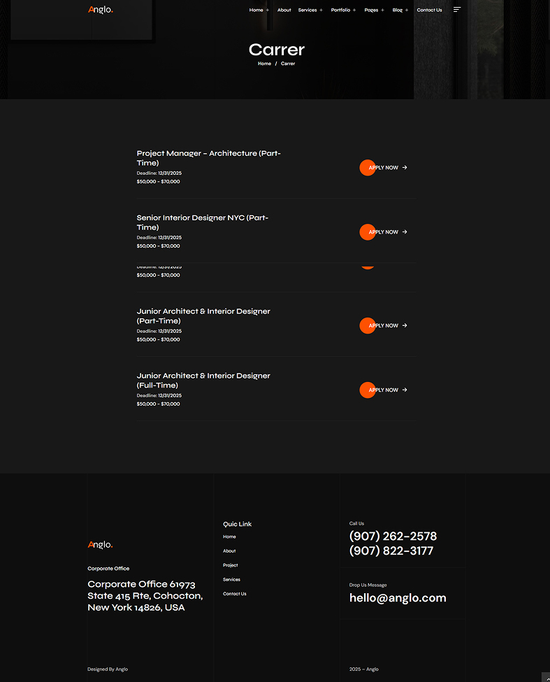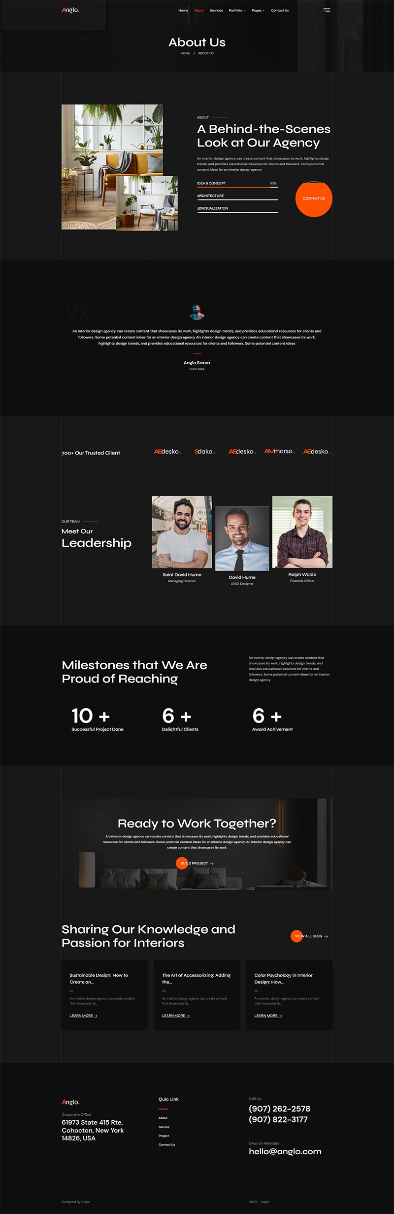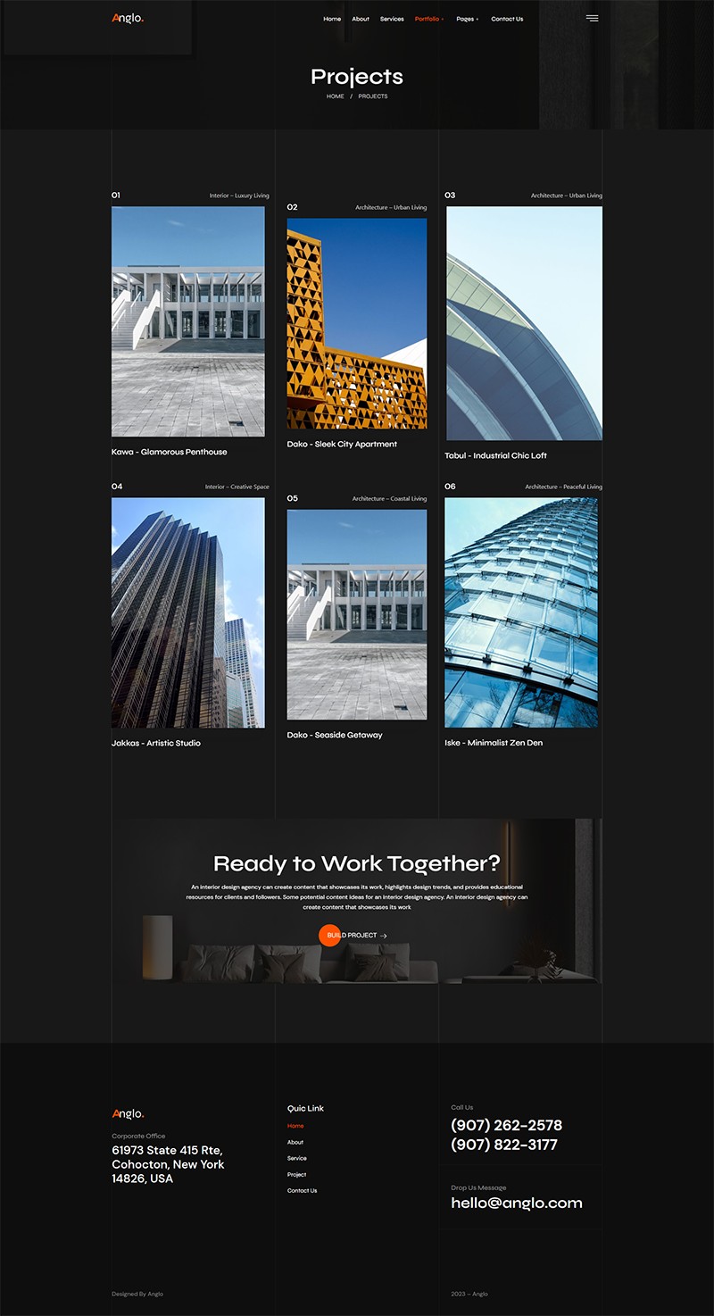 Drag, drop, and design every part of your website visually. From headers and footers to projects, Anglo gives you full control without a single line of code. What you see is exactly what you get.
