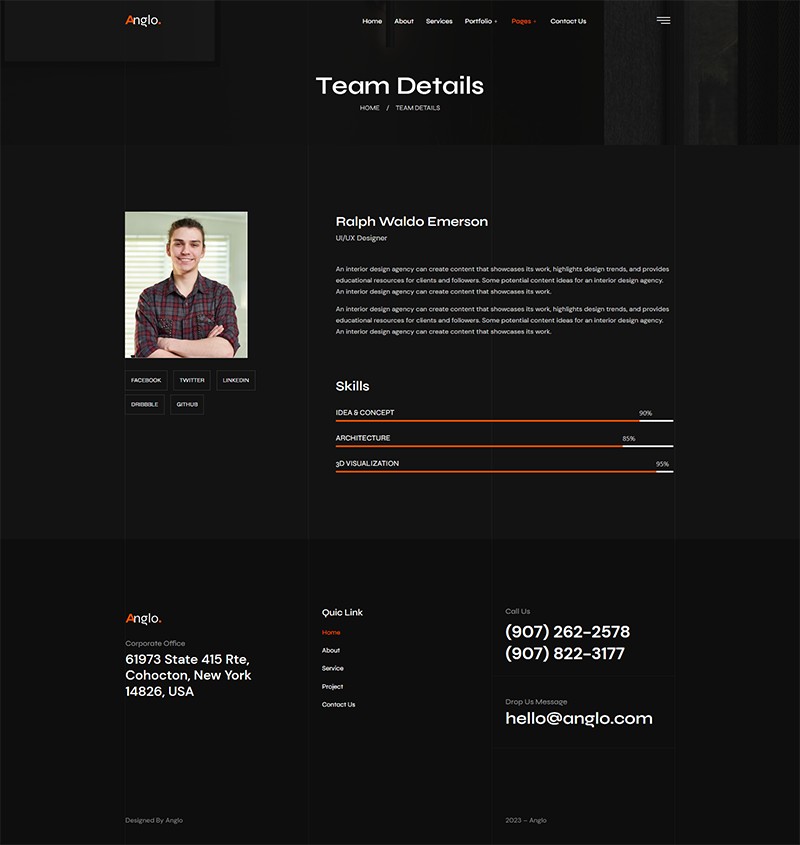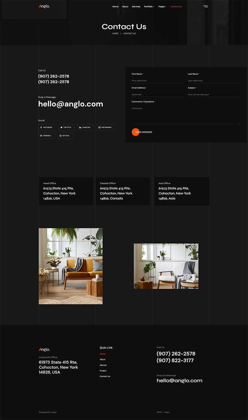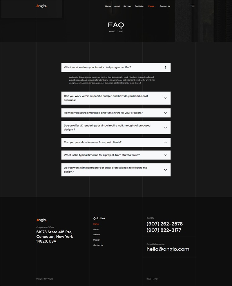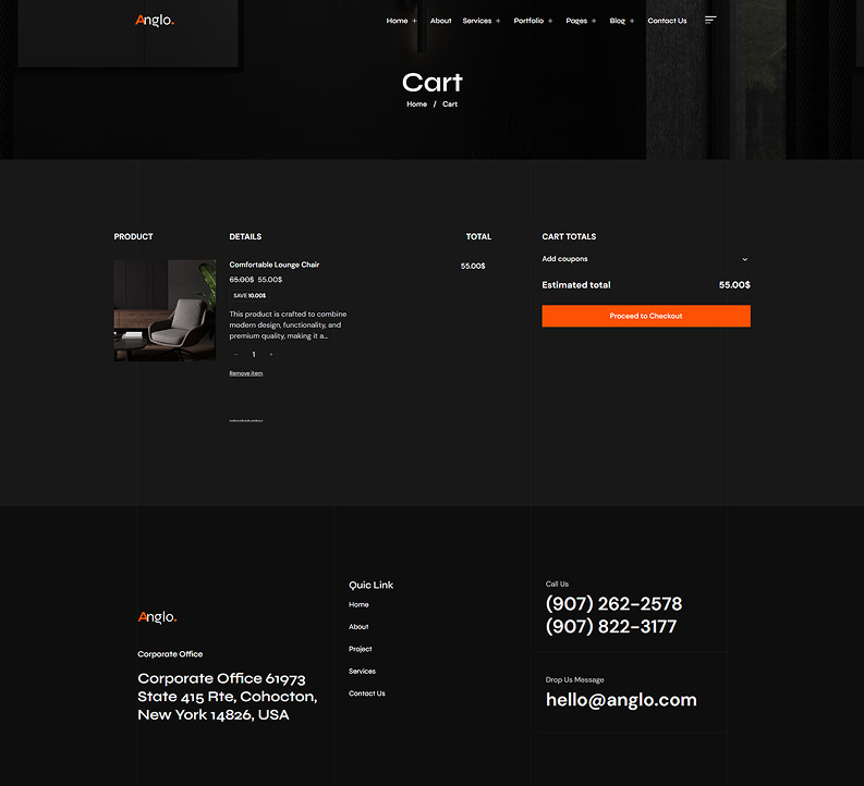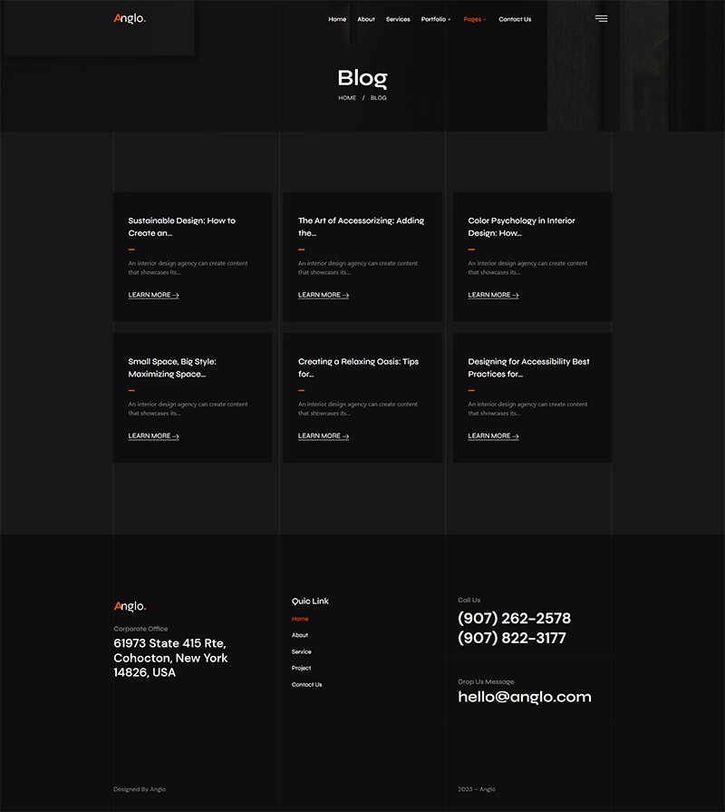 Drag, drop, and design every part of your website visually. From headers and footers to projects, Anglo gives you full control without a single line of code. What you see is exactly what you get.