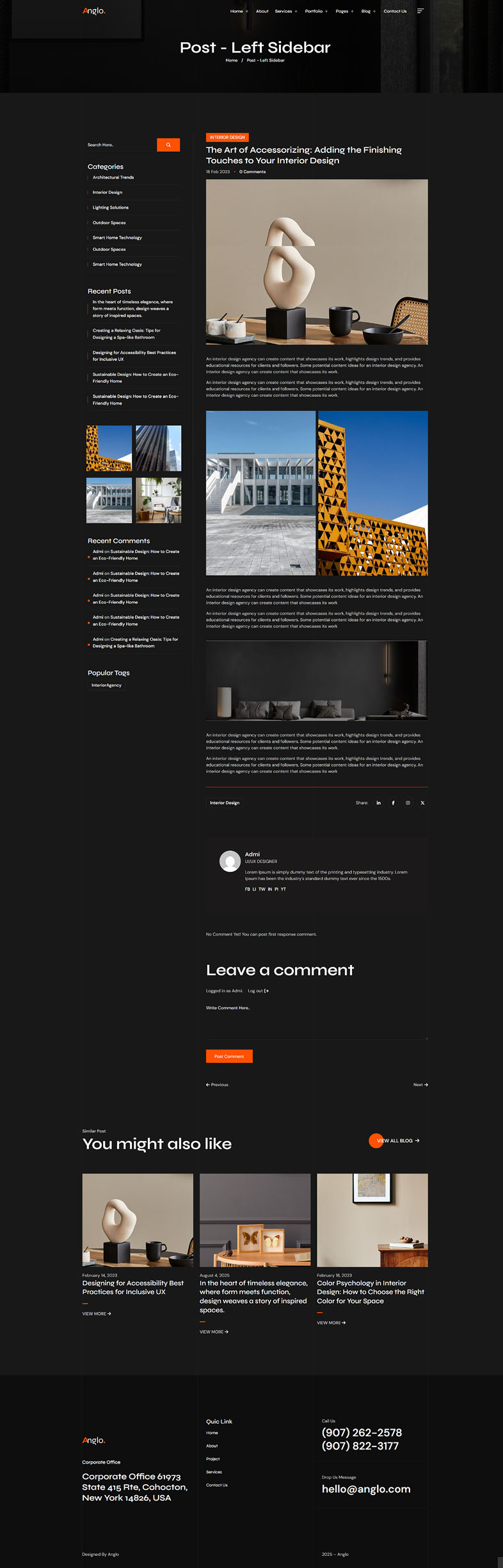 Very easy! Anglo gives you complete control. You can easily upload your logo, change colors, and select from hundreds of Google Fonts through the live Theme Options panel. For page-level design, you have the full power of the Elementor drag-and-drop builder to create layouts that perfectly match your brand's aesthetic.